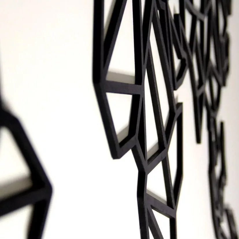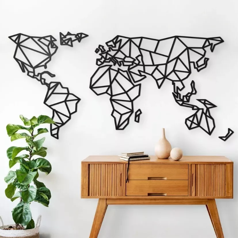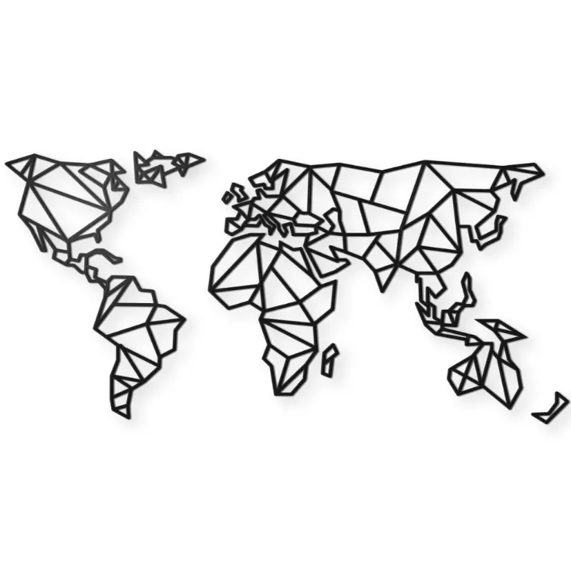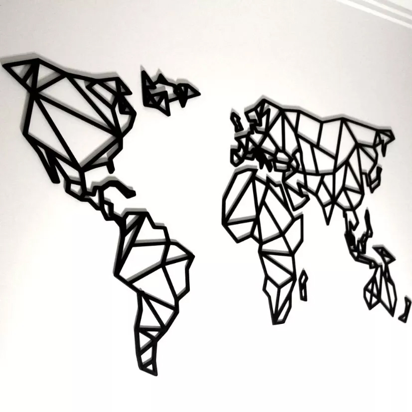 Planisferio geométrico, Exclusivo cuadro, fabricado en durolac de 3mm negro (estándar) o colores a elección, dimensiones aproximadas 40 x 80 cms, el cuadro viene dividido en 5 partes. cuenta con adhesivo transferible para su instalación.